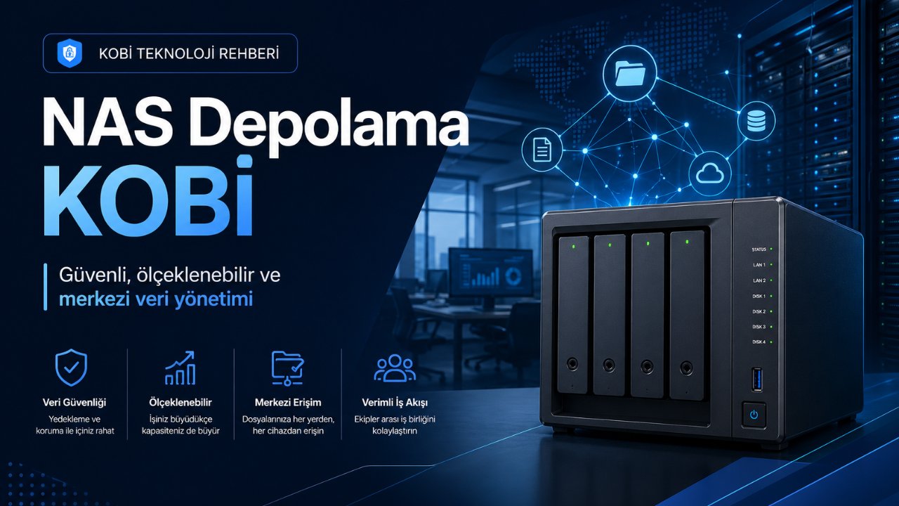 NAS (ağ bağlı depolama) cihazları, KOBİ'ler için merkezi dosya paylaşımı, yedekleme ve ortak kaynak sağlama açısından ekonomik ve etkili bir çözümdür. Bu rehber NAS seçimi, kurulumu ve günlük yönetimini açıklar.