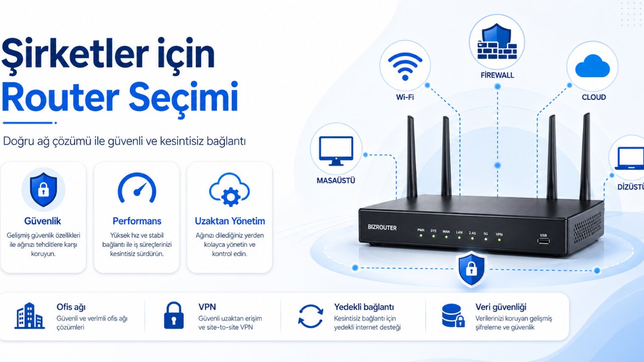 Ofis routerı sadece internete çıkış cihazı değildir; ağ güvenliğinin, kullanıcı deneyiminin ve uzaktan erişimin temel taşıdır. Bu rehber KOBİ'ler için doğru router seçiminde göz önüne alınması gereken kriterleri açıklar.
